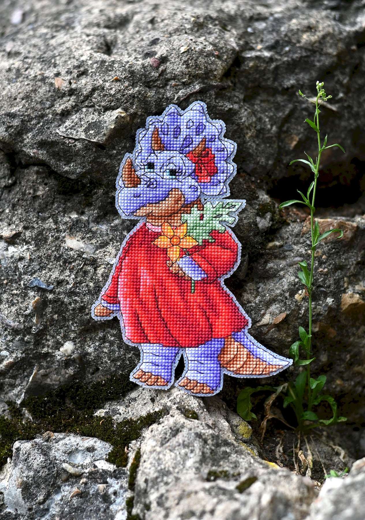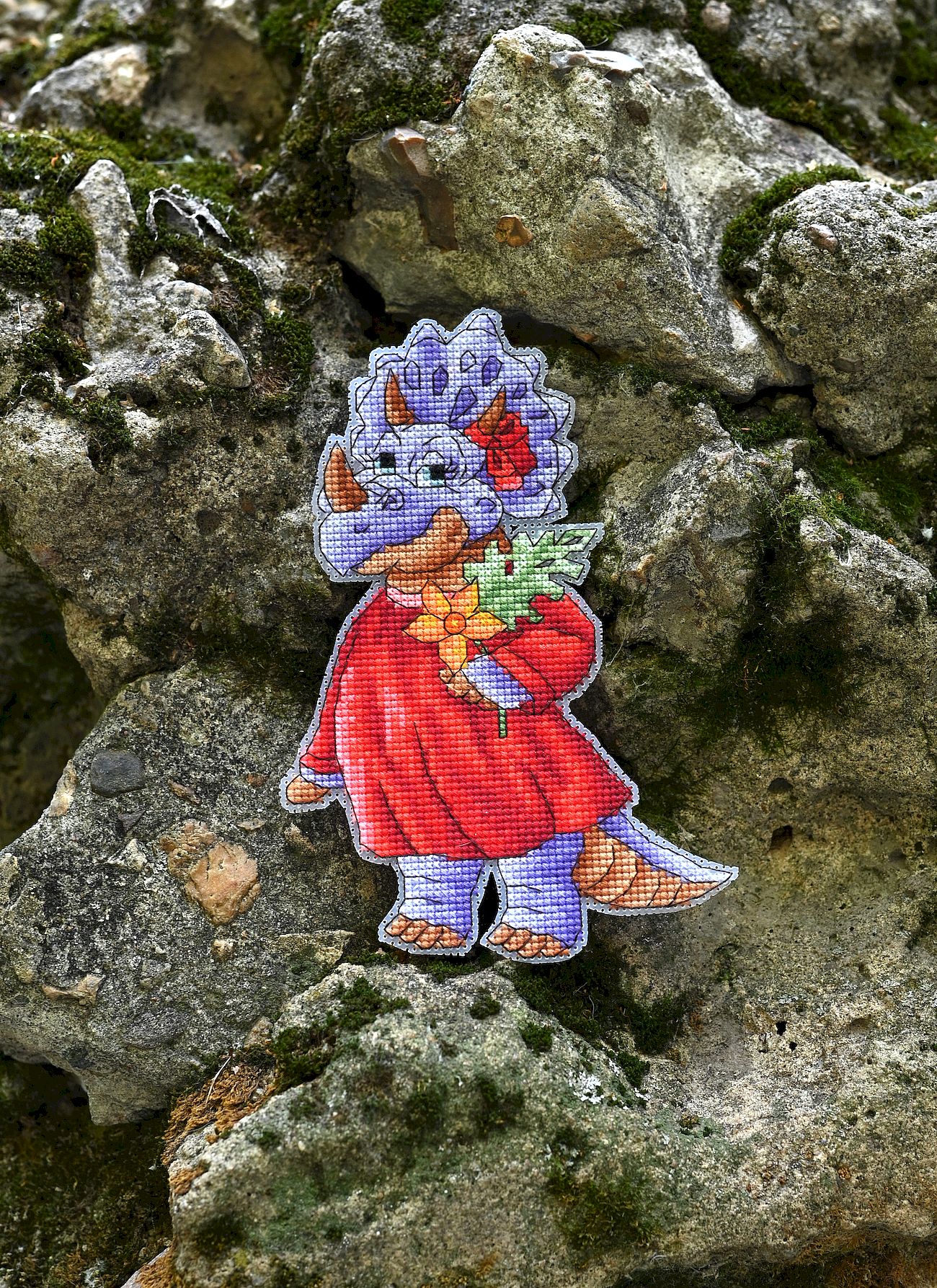 Состав набора: Цветная символьная схема, канва пластиковая № 14, мулине Риолис шерсть/акрил 26 цветов, фетр, магнит, игла.