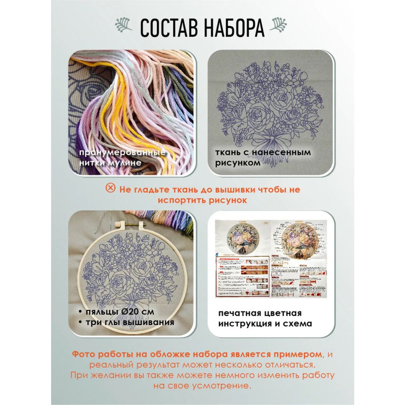 | Основа: | ткань для вышивки с нанесенным рисунком |